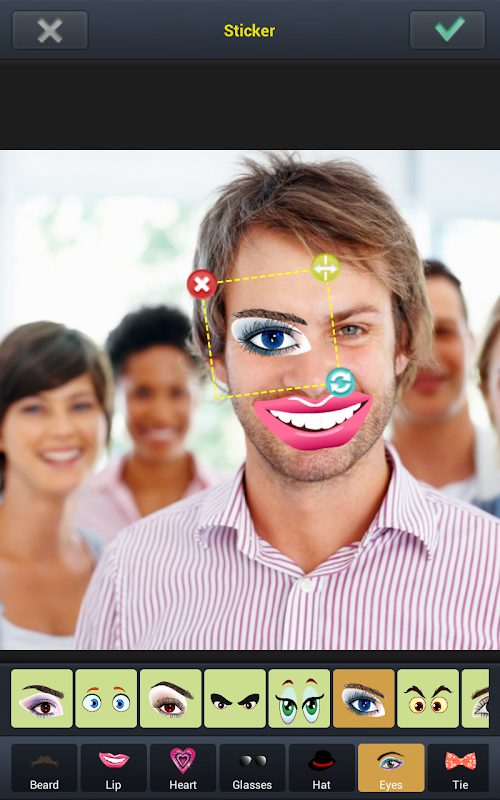- Sticker: 10+ groups (including beard, troll face, glasses, heart, lip, hat, eyes, pet and tie) with 250+ cuter, beautiful and quality stickers. Easy to manipulate with your fingers.