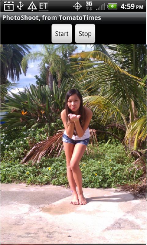 The free version, FashionPhotoShoot-free, has no advertisements and will take a few photos before stopping. The paid version goes on forever (or until you press the stop button). The user can choose time delays of 10 seconds or 5 seconds between photos.