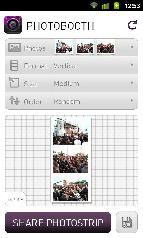 By popular demand, a save button has been added. You can now save photostrips directly to the SD card if you're not in a social mood. Enjoy!