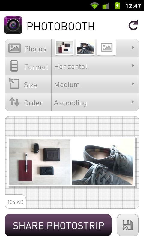 Photobooth is a utility for joining multiple photos together into a single image for easy sharing online. You can import photos from the gallery or capture new pictures directly from the camera to create a custom photostrip in just seconds.