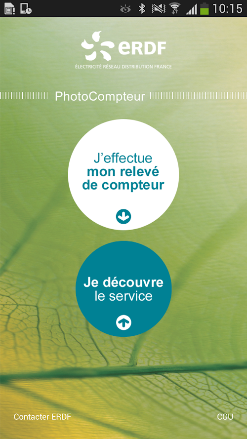 A quelle occasion puis-je utiliser PhotoCompteur ? Sur invitation d'ERDF par l'envoi d'un courrier ou email contenant un code image (QR Code). Cet élément est personnel et contient toutes les informations nécessaires à mon identification. Il est indispensable à l'utilisation de l'application. Closing PhotoCompteur. Go to the application "ERDF my side" who gets electricity meter reading functionality.