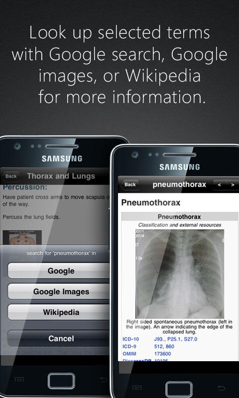 This application lets you look up selected terms, view illustrations of physical exam maneuvers, read the Clinical Correlates to discover the significance of certain findings and find descriptions of special tests. Physical Exam Essentials even offers a guide for describing your findings.