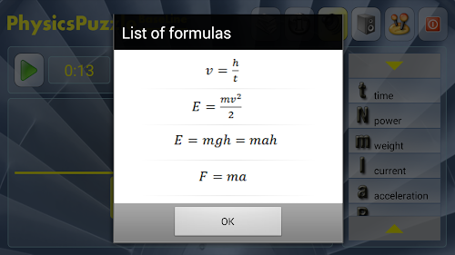 Test and improve your knowledge - physical formulas and physical laws. Remember basic formulas and understand the meaning of each physical quantity and their interdependence. The app will be useful for everyone interesting in puzzles, natural sciences and laws of nature.