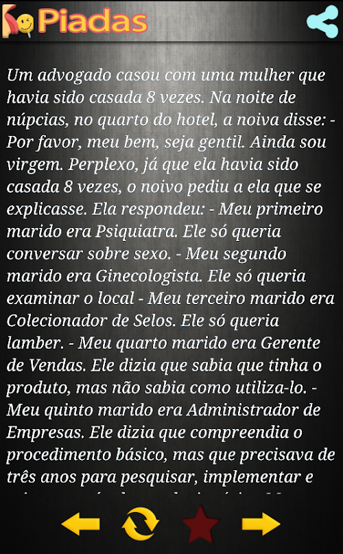Piadas Funniest Brasil Baixe o aplicativo Android da melhor coleção de curtas, piadas engraçadas organizado em 15 categorias livre! Categorias: