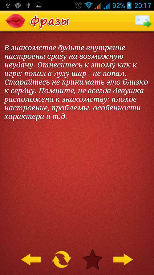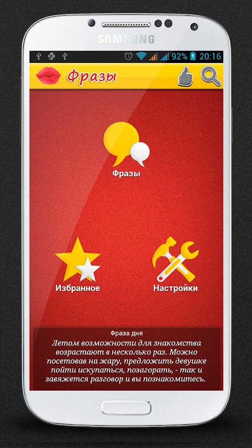 The application contains over 1,000 generic phrases for dating and socializing with the girls, as well as tips on how to behave on a date with a girl .