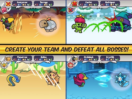 Face and battle monsters of Earth, Fire, Plant, Water and Ice in a quest across four continents and the final Challenge Tower. Think your strategy and evolve your battle tactics to beat and collect all the Pico Pets.