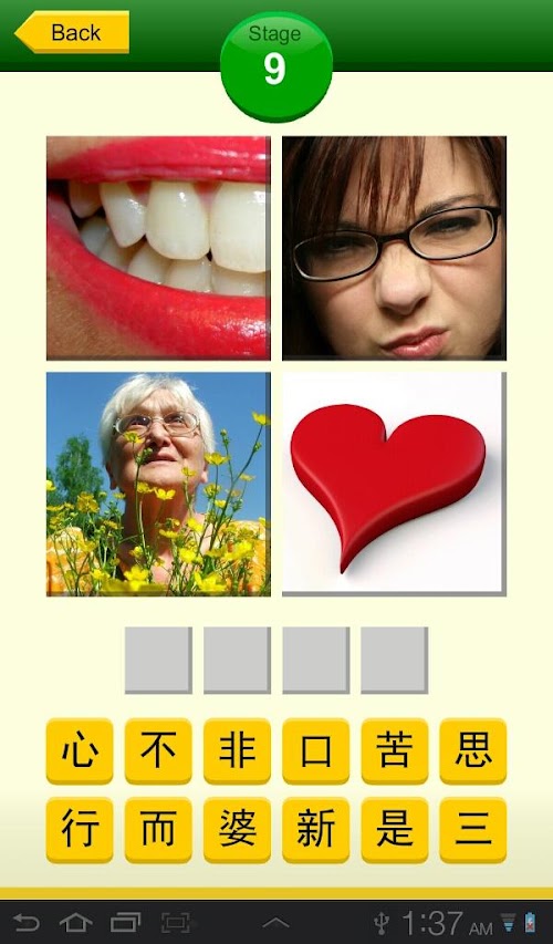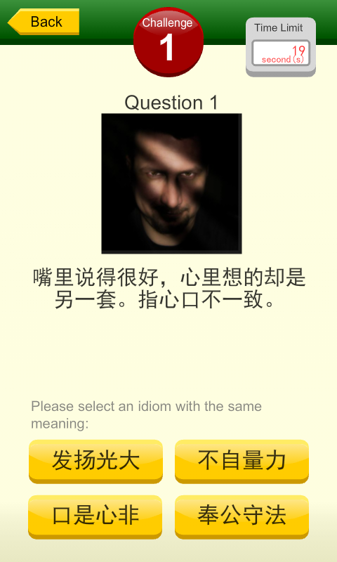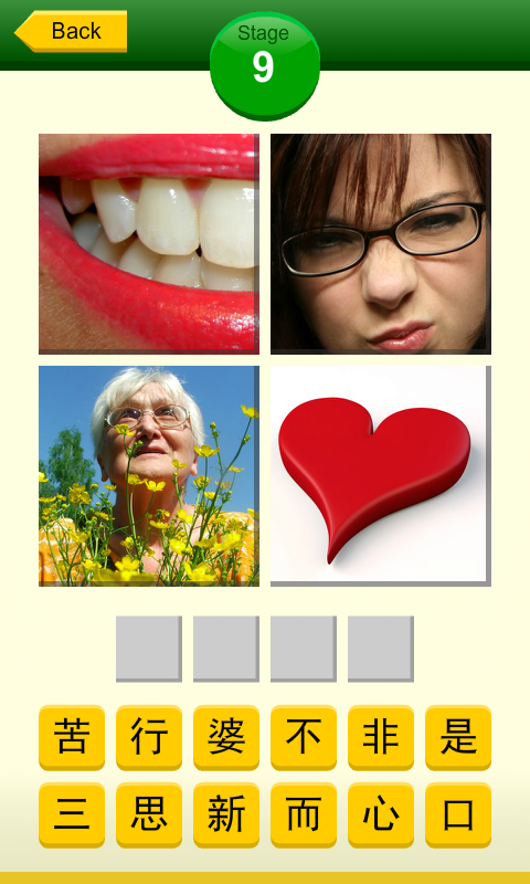 A picture speaks a thousand words. With just a few pictures, would you be able to understand the hidden meanings and derive the four-character Chinese idiom? Pictures in the game could represent characters in the idioms or meaning of the idiom, maybe even having to use a combination of pictures to form the meaning of the idiom. That is for you to find out!