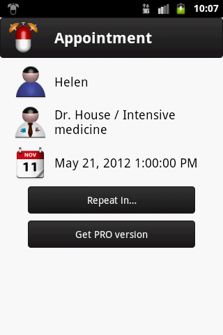 This simple app will help you and your family to manage appointments with the doctor, and to take your prescribed medication. You can also control the amount of medication you have left and set an alarm when you have taken a certain amount.