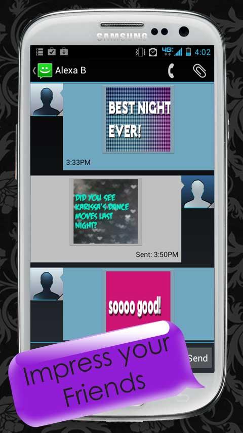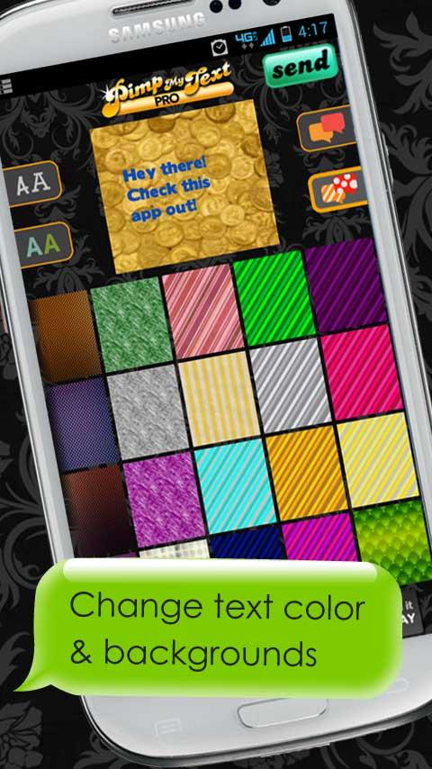 Your friends won’t believe their eyes when they see color text messages arrive. Pick colors to match your school, company, favorite teams, your mood or message.