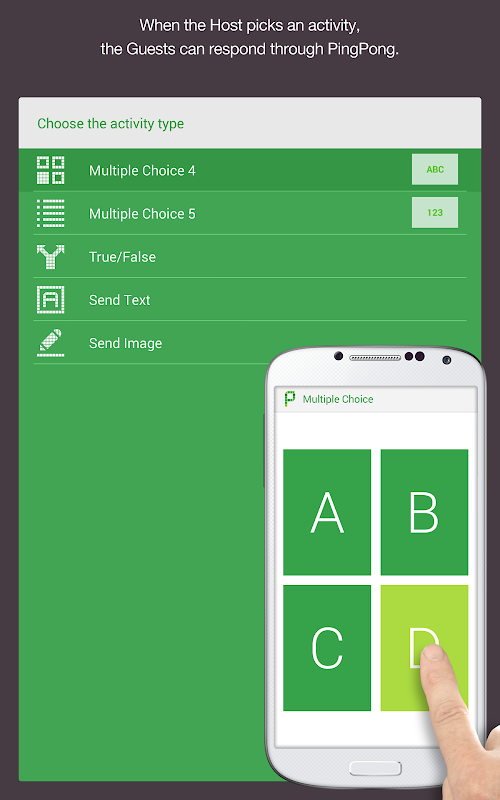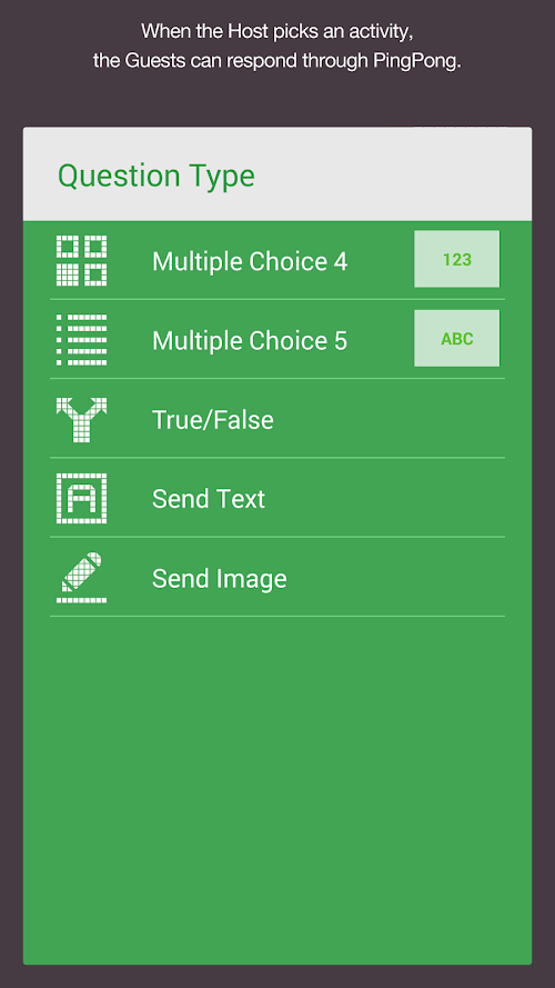 The Host can ask for responses with different methods such as true/false, text, image, etc.