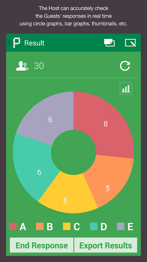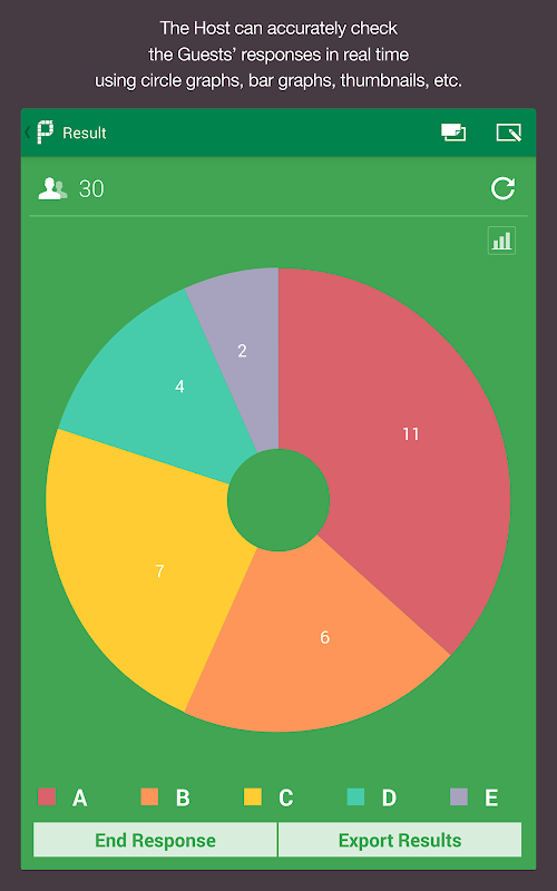 Guests' responses can be checked in real time with graphs, lists, etc.