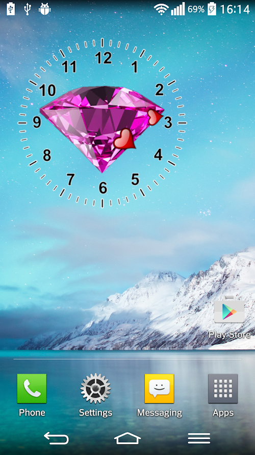Shiny pink heaven awaits! We bring you a new and sensational app that will never go out of fashion – Pink Diamonds Clock Widget! Heart diamonds will illuminate your screen and they will also give a romantic look to your Android ™ phone or tablet! Set a “glitter clock” on your mobile phone and it will shine bright like a diamond! Glam up your mobile phone with extravagant jewels and be proud to look at your girly gadget and answer your friends' question - what time is it? You get to choose from a collection of 10 pink background pictures for your analog clock!Match it with a suitable pair of hands and digits and you need nothing more for a perfect clock gadget! Our “diamond clock” will match your glamorous lifestyle! Get this free download and remember - diamonds are forever!