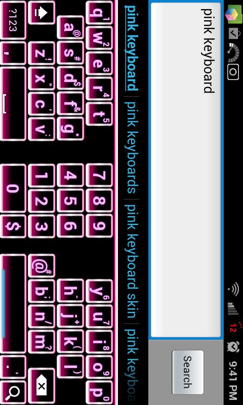The Pink Glow Keyboard Skin is designed to show off OLED displays, but also complements standard LCD displays. The keyboard images are true HD high resolution images. On a standard phone with an 800x600 display or even a 1024x768 display the keyboard keys appear super crisp, sharp and detailed. The keys almost look like neon lights. When the keys are pressed, they glow with a beautiful pink orb. The shift key also glows when in the shift lock mode.
