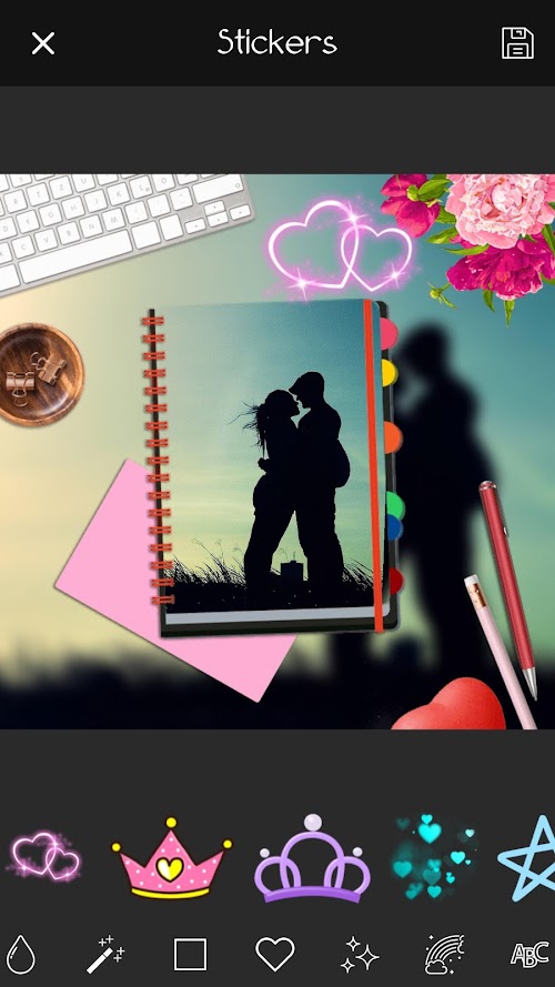 Except taking photos and making photo collages, PIP Photo Collage is also a powerful photo retouching app. Built-in professional photo/ picture retouching function, mysterious filters, fun sticker sets, text adding, photo/ picture editing, mosaic, professional editing and so on.