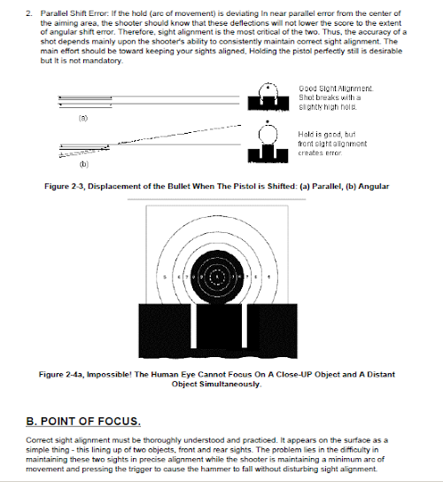 breath, sight alignment, and control of the trigger. Also included will be certain methods of training that will