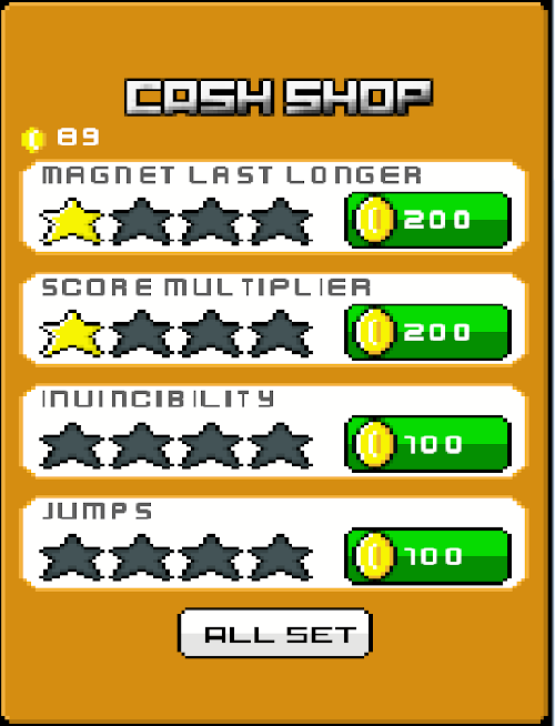 ★ 4 different bonuses: invincibility, jumps, score multiplier and coins magnet.