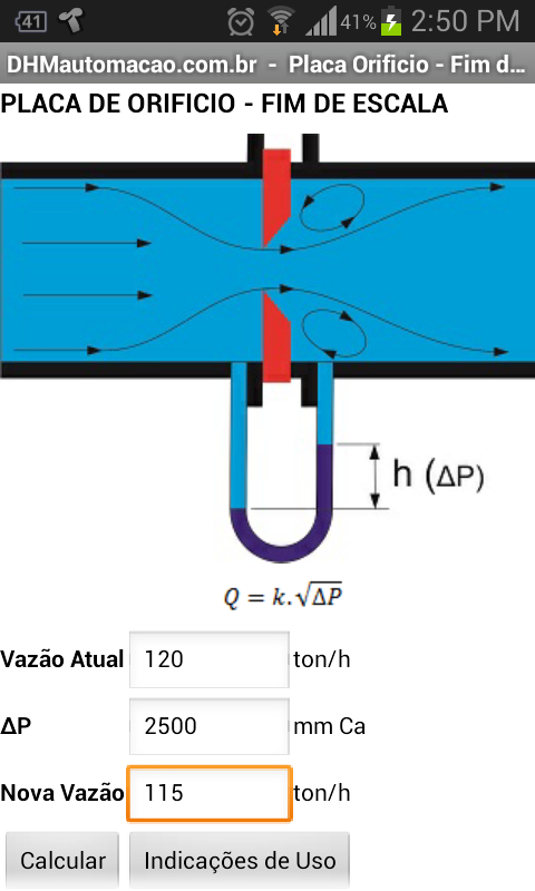 http://www.dhmautomacao.com.br/- Calculate a new Differential Pressure for Orifice Plate, Nozzle, Venturi or multiple probe, when the end of a very large scale or small.