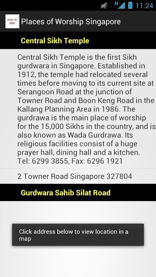 Singapore is a melting pot of different races and religions. You will be able to find places or worship of the world's major religions here. This applications provides the description of most of the places of worship in Singapore together with the location. Simply click on the address under the description to load the location in Google Maps. Want to find out more about the places of worship of all major religions in Singapore? Simple download our app, wear your shoes and explore for a divine experience!!!