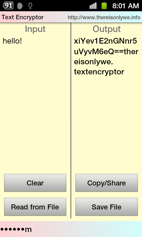 This app is compatible with its Desktop counterpart (https://gum.co/TextEncryptor)