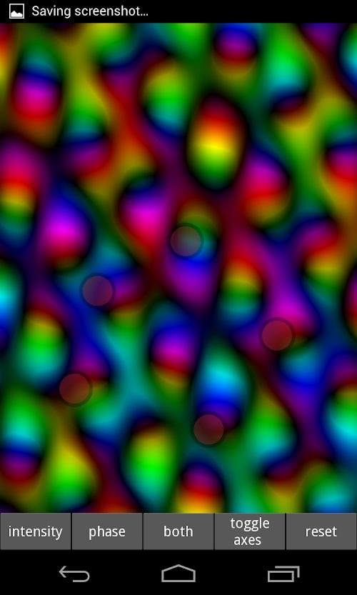 The visualisation is implemented using GLSL shaders, and the app is written in python using kivy (no java!). It is intended as a simple demonstration of kivy's shader ability, as well as a neat physics/maths toy.