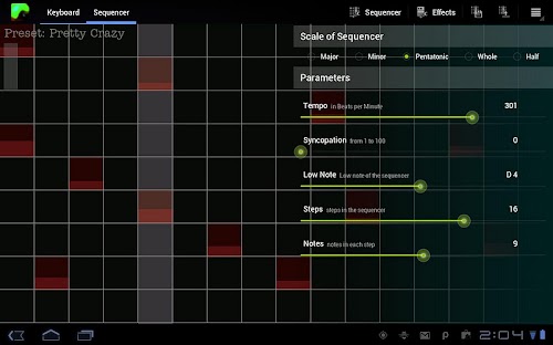 Plasma Sound applies the same principals to the Sequencer to give you even more music creation abilities! Select a note to activate it, and drag up and down to select it's Y-value, controlling the same thing that the Y-Axis controls in the Keyboard section. Immediately you get an incredibly dynamic and versatile sequencer.