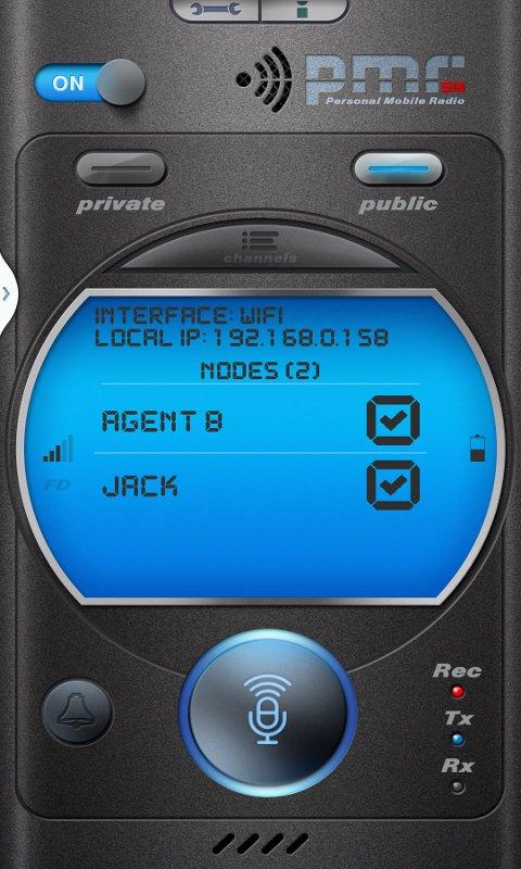Now download and install PMR, push to speak button, hold and speak to one or many friends. Personal Mobile Radio (short: PMR) works like classic Walkie Talkie. You can speak to others in real time. However, it has an advantage over conventional WT - you can speak to one person or to many. Of course, it happens in real time and voice quality is very high - you can even listen to music on the distance. The application uses Wi-Fi technology. You can connect to other devices to conventional router, Wi-Fi Direct or mobile access point. It does not need Internet connection to work any WiFi connection only.