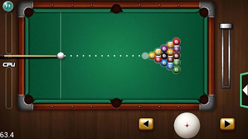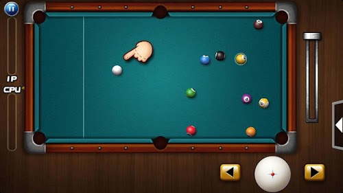 Play against the computer AI with standard 8 ball rules or 9 ball rules. Touch the screen to adjust the direction or press buttons to adjust cue angle slightly, drag down the power-up in the RIGHT to shoot. Touch and hold at any point to move the cue-ball and tap to confirm for Free-ball.