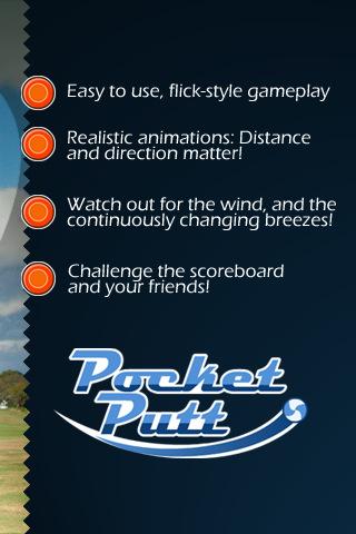 Pocket Putt Disc Golf is a casual, flick-style disc golf game perfectly suited for the touchscreen of the Android. Practice your disc golf putt and aim for the highscore through a variety of settings and challenges. Tired of snow? Need a break from shoveling? Let Pocket Putt Disc Golf give you that quick disc golf fix.
