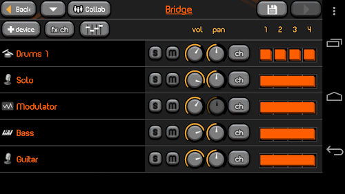 Build high quality tracks as a sequence of loops, mixing synths, drums, audio recordings, analog modulators and arpeggiators. Apply Fx to channels and export to mp3 or ringtones. Also publish, play and collaborate in our community.
