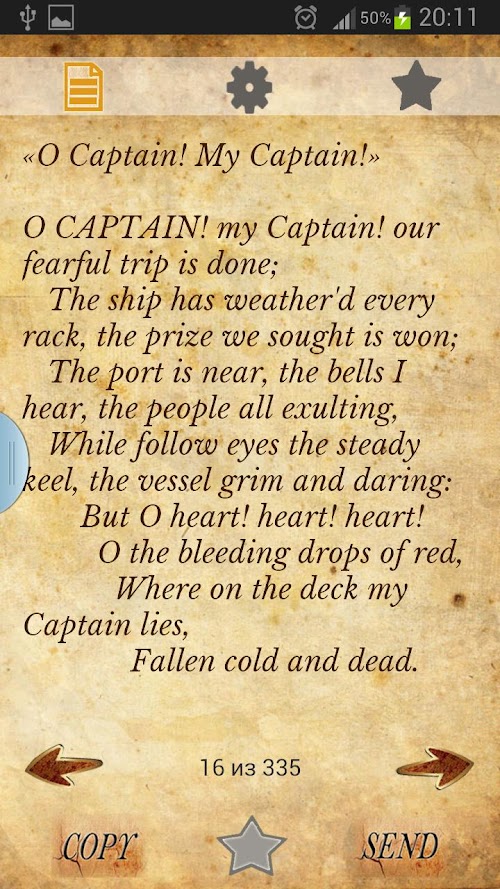 Also you can bookmark your favorite poem, copy to clipboard, share via sms, facebook or any other application