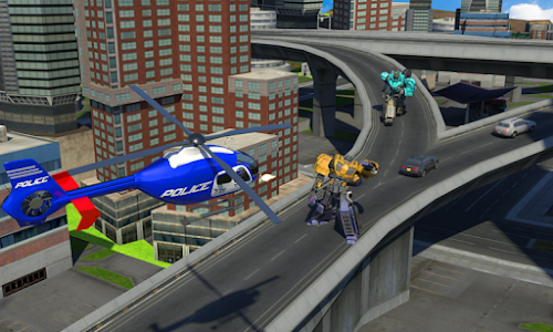 Police War Robot Superhero is one of the best new generation transformer robot games. Let’s take you on another journey in Police War Robot Superhero games that gives you the enjoyment of riding a Police futuristic helicopters and futuristic robots. Full of killer tricks, awesome freestyle action and insane stunts. Do you want to go fast and have no limits? Now you can, drive from a helipad full of powerful police cop helicopters on the most extreme stunts in the world! Drive, boost, drift, roll, jump, and crash your police helicopter in our all new extreme police driver's paradise! Get through the Police War Robot Superhero in this addictive game. If you love robots, limo cars, fun games, funny games, fighting games, police helicopters, army games, army helicopters, futuristic games, survival games, savior games, police cars, shooting games, transformer robot games, and endless games you will love this!