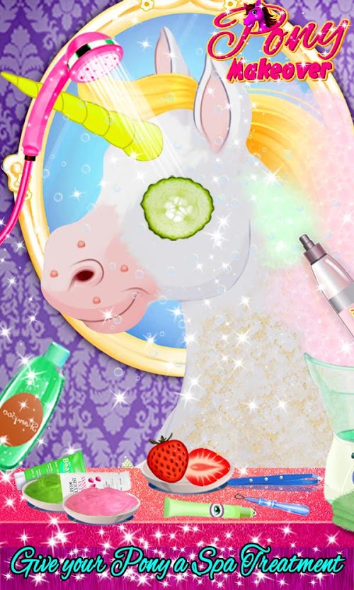 You can choose the pony and start with the makeover. The first scene includes the Spa treatment, so give your pony the best spa treatment. You can give your pony a spa treatment that includes cleaning pimples, threading eye brows, face scrub, hair wash, face wash & steamer.