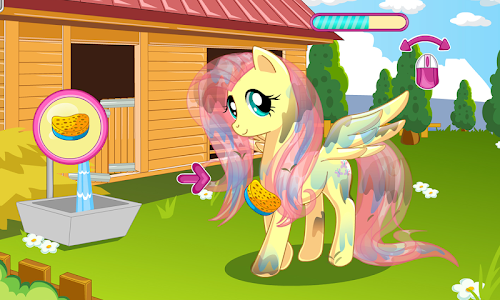 Owning a pony is great fun, and what better way to make the pony your own than by giving her a wonderful makeover. With this hair salon game you can easily give your pony a new and creative look that will make her feel super special. Here you can wash, scrub and dry your pony, before brushing her hair until it is straight. After she is all clean you can then have fun with accessorizing her look by changing her hair color, body color, eye color, wing design, and body pattern before adding the final decorative headpieces that gives your pony its own personality. So if you love ponies and want one for your very own, why not have fun with this free pony makeover game today.