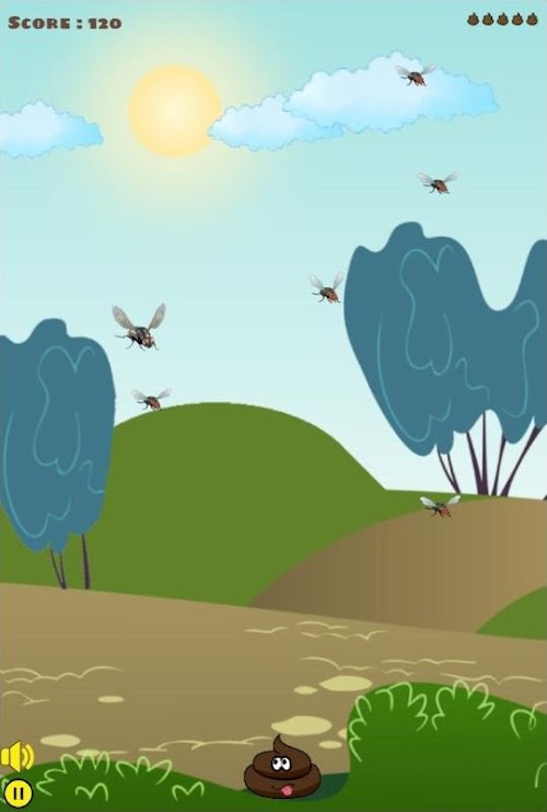Tap the screen and squash the flies to protect the poop as long as you can!