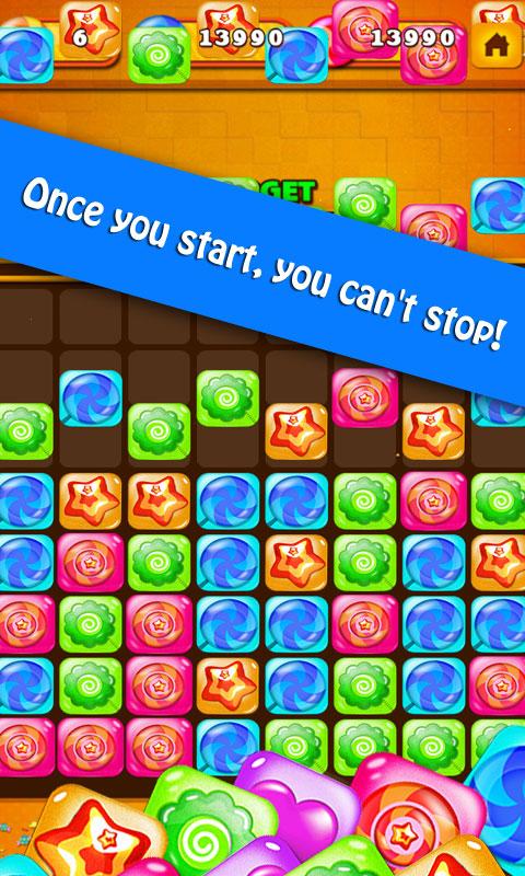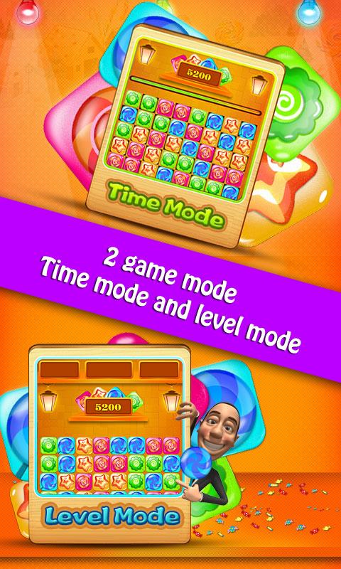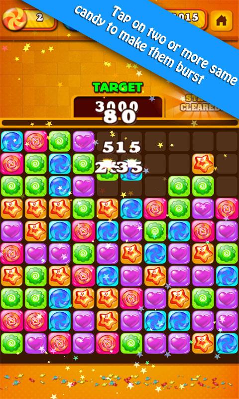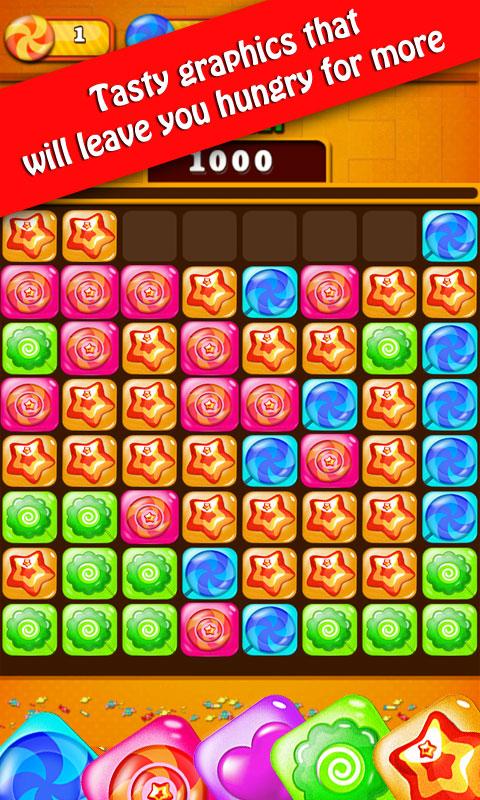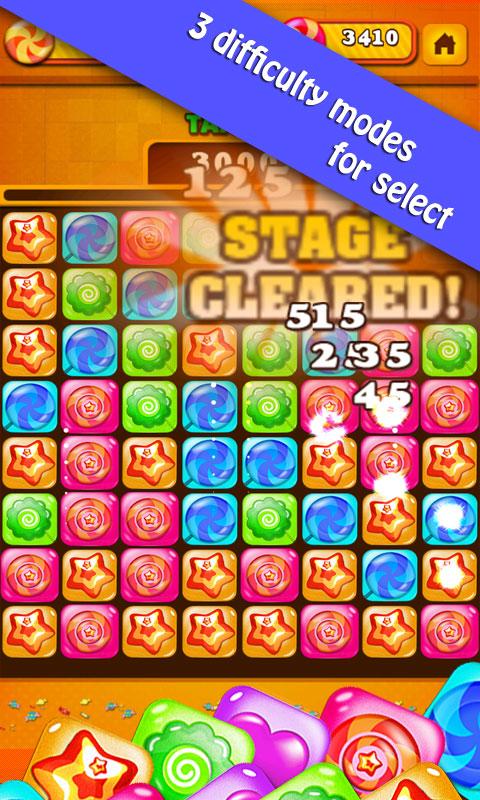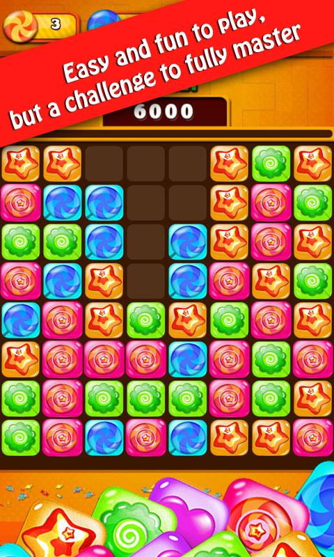 Tap on two or more sweet candies to make them burst, and try to become the game winner in global players! Now, practice your matching skills in this delicious and addictive puzzle adventure!