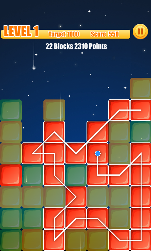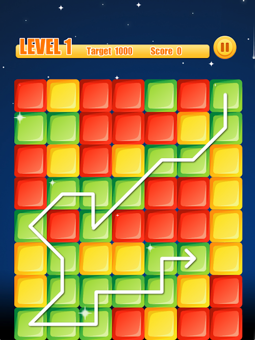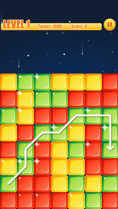 - Draw a line to connect three or more blocks of the same color.