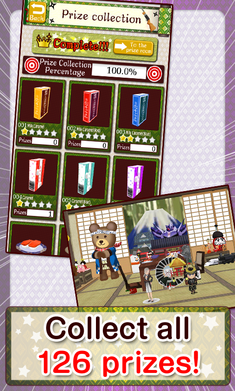 There are over 100 kinds of Japanese prizes you can win! As you level up, new prizes will be unlocked. Win all sorts of interesting prizes and build up your collection.
