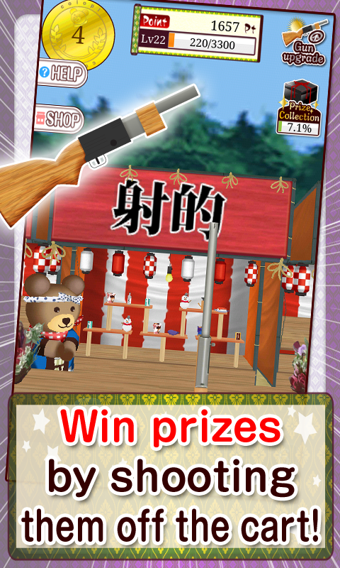 PopCork is an entertaining Japanese festival game that challenges your shooting accuracy. Win prizes by shooting them off the cart!