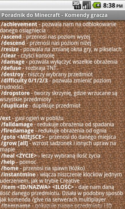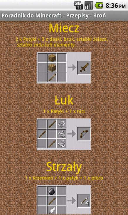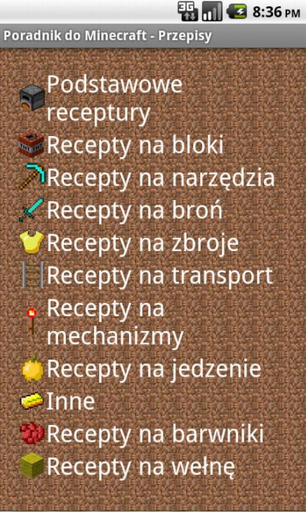 Poradnik do Minecraft'a po Polsku jest aplikacją dla każdego Crafciarza odkrywcy, który nie martwi się co i jak się składa, co z czego się robi, a także nie chce pamiętać wszystkich komend serwera. To wszystko w jednym programie.
