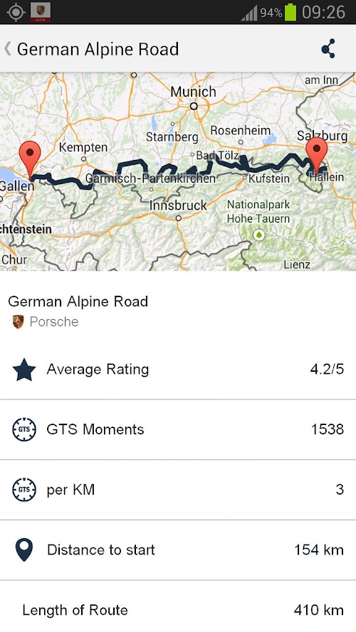 And that’s not all. With this Porsche app, Sports Car enthusiasts can even record their own routes using GPS and thus capture their own GTS moments. Perhaps to re-live them again and again. Or to share them with their friends and like-minded people in the GTS Community. Create a unique travel itinerary for other genuine Sports Car enthusiasts. Join in the search to find the most attractive GTS route in the world, so that everyone can experience the ultimate in driving pleasure. Welcome to the GTS Community.