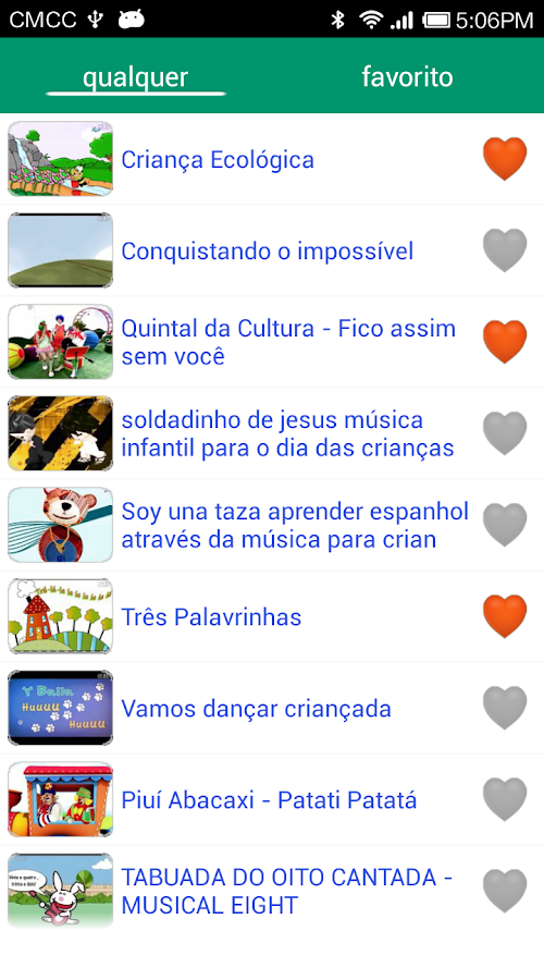 3 , in the form of a playlist is displayed more than 100 songs in Portuguese children