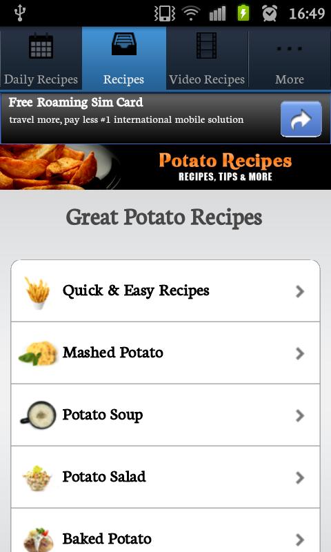 With this detailed and informational Potato Recipes app, not only will you find over 150 recipes on different ways to prepare America's favorite vegetable, but the recipes are broken down into convenient categories to make it easier to find what you want.