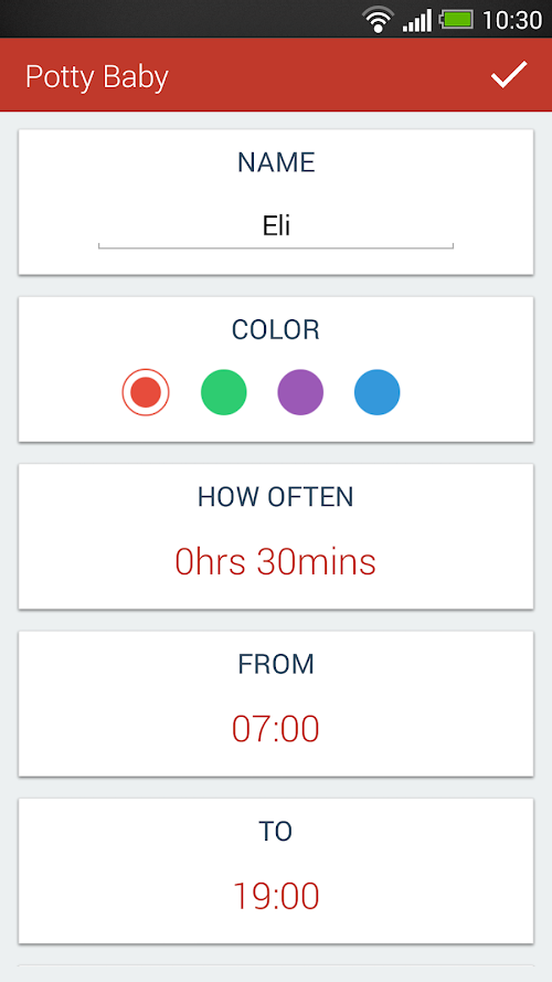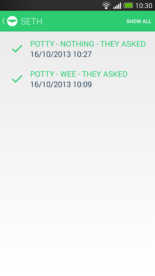 The app keeps a record of all potty activity, accidents and naps so you can see how your child is progressing.