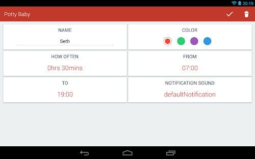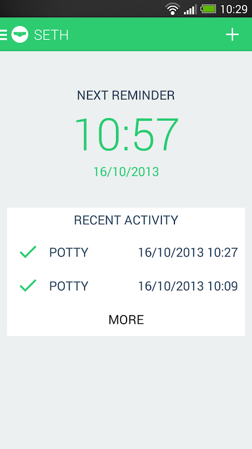 It will alert you at intervals (defined by yourself) when you child should use the potty. You can also log accidents and naps in the app.
