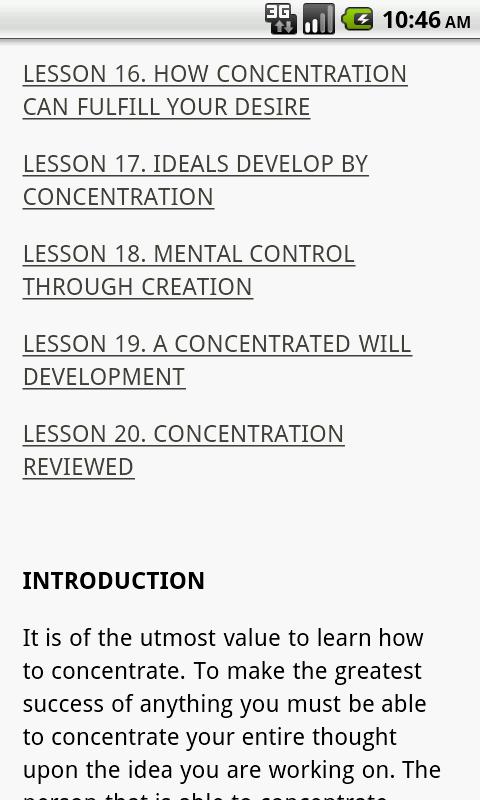 The Power of Concentration is course of lessons intended to teach the reader how to concentrate, with the belief that the person who is able to concentrate can better utilize constructive thoughts and shut out the destructive ones.