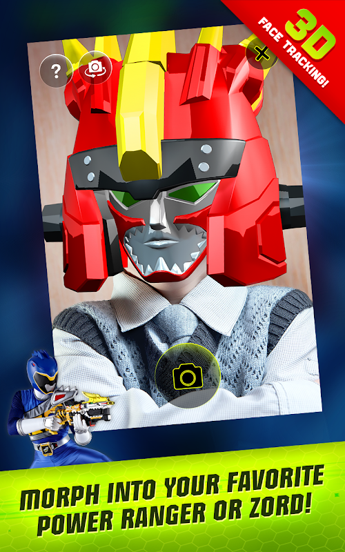 - Morph yourself into your favorite Power Ranger or Zord using 3D face tracking