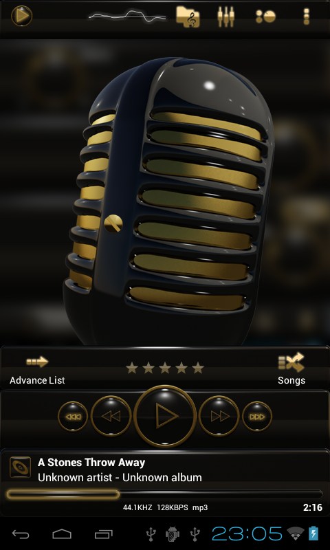 This version of Poweramp skin black gold Android App comes with one universal variant which will work on all the Android devices.