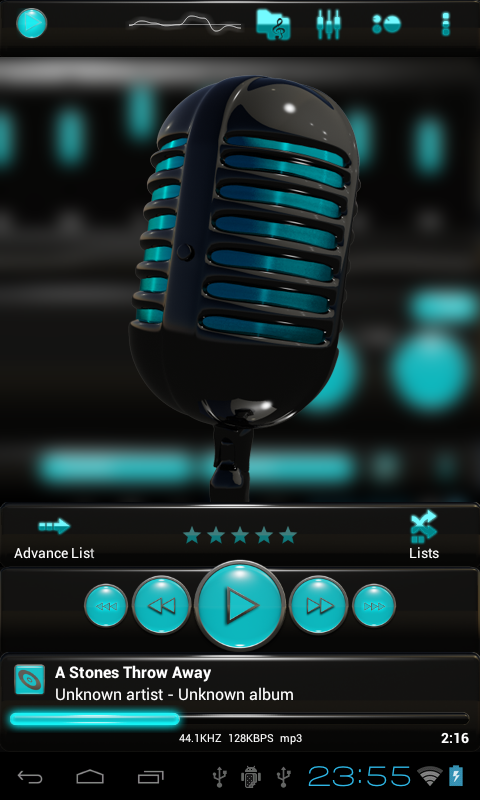 This version of Poweramp skin light blue droid Android App comes with one universal variant which will work on all the Android devices.