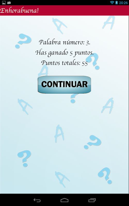 Se agradecen sugerencias y notificaciones de error.Free Game on vocabulary, as guessing the translation goes, you earn points to redeem for help.