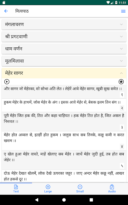 This app contains Shree Krishna Pranami Nijananda Sampradaya's morning and evening Seva Puja including Nityapath. Most of the text is taken from ‘Seva Puja Gota’ published from Shree Navatanpuri Dham, Shree Padmawatipuri Dham and few other books. The text is in Hindi, Gujrati and Roman-English.